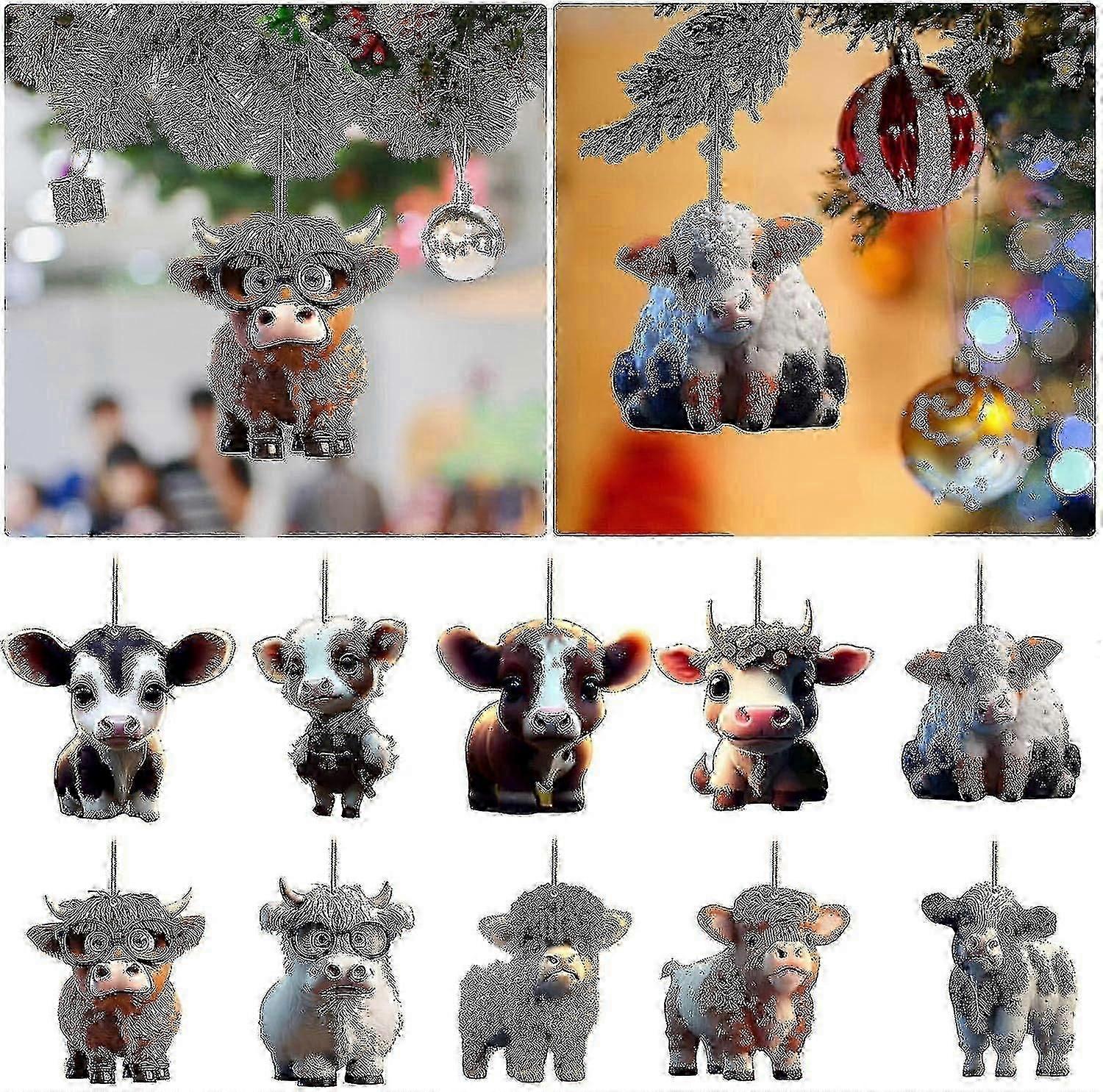 10pcs Cute Cartoon Cow Car Pendant Home Tree Decoration, Christmas Tree Ornament, Home Decor-yujia