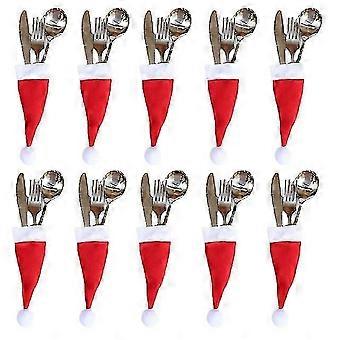 10pcs Tableware Holder Bag Christmas Hat Christmas Decorations Kitchen Accessories Home Decor 2025 Christmas Ornamentsc p