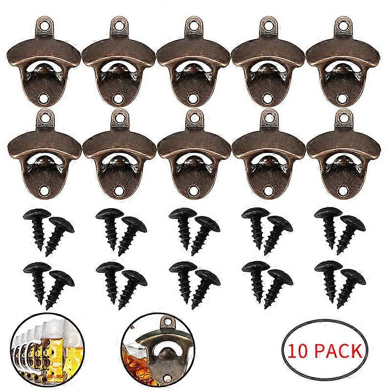 10Pcs Wine and Beer Bottle Opener Vintage Brown Wine Wall Mount Beer Brewery Side Bottle Open Cap Catcher Home Kitchen Bar Accessories