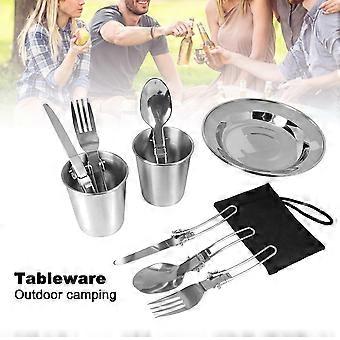 10Pcs/Set Camping Cooking Supplies Portable Safe Silver Color 10-piece Stainless Steel Cookware Set for Picnic Outdoor TablewareDescription:It is convenient for any picnic and camping because the cookware set has compact size and ultra-light body. Anti-rust and long lifespan features show that the cookware set has a good quality material design. Made of stainless steel material, the 10-piece stainless steel cookware set is durable to use. The length of dishes plate is 18cm. The length of cup (about 200ml) is 7cm and the width is 8cm. The length of cutter, fork and spoon is 16cm. Perfect for camping, backpacking, hiking, etc. Item Name: 10-piece Stainless Steel Cookware SetMaterial: Stainless SteelColor: Silver ColorFeatures: Portable, Convenient, Ultra-lightSize Details:Dishes Plate Length: 18cm/7.09" (Approx.)Cup (About 200ml): 7cm x 8cm/2.76" x 3.15" (Approx.)Cutter, Fork, Spoon Length: 16cm/6.3" (Approx.)Notes:Due to the light and screen setting difference, the item#39; s color may be slightly different from the pictures. Please allow slight dimension difference due to different manual measurement. Package Includes:1 x 10-piece Stainless Steel Cookware Set