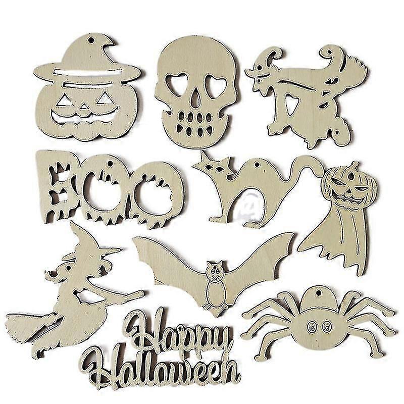 10pcs/set Halloween Decorations Holiday Party Wooden Pendant