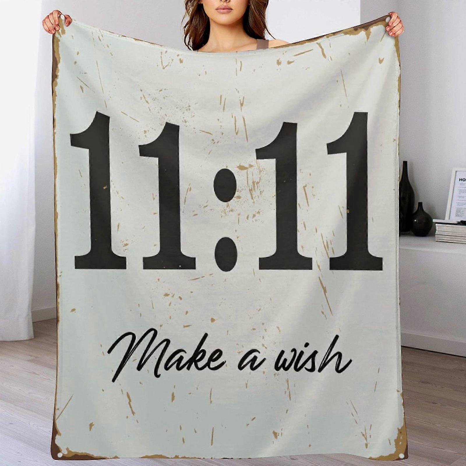 "11:11 Make a Wish" Text Graphic Flannel Blanket - Soft Warm Cozy Throw for Bed Couch, Inspirational Quote Blanket Gift for Home Decor