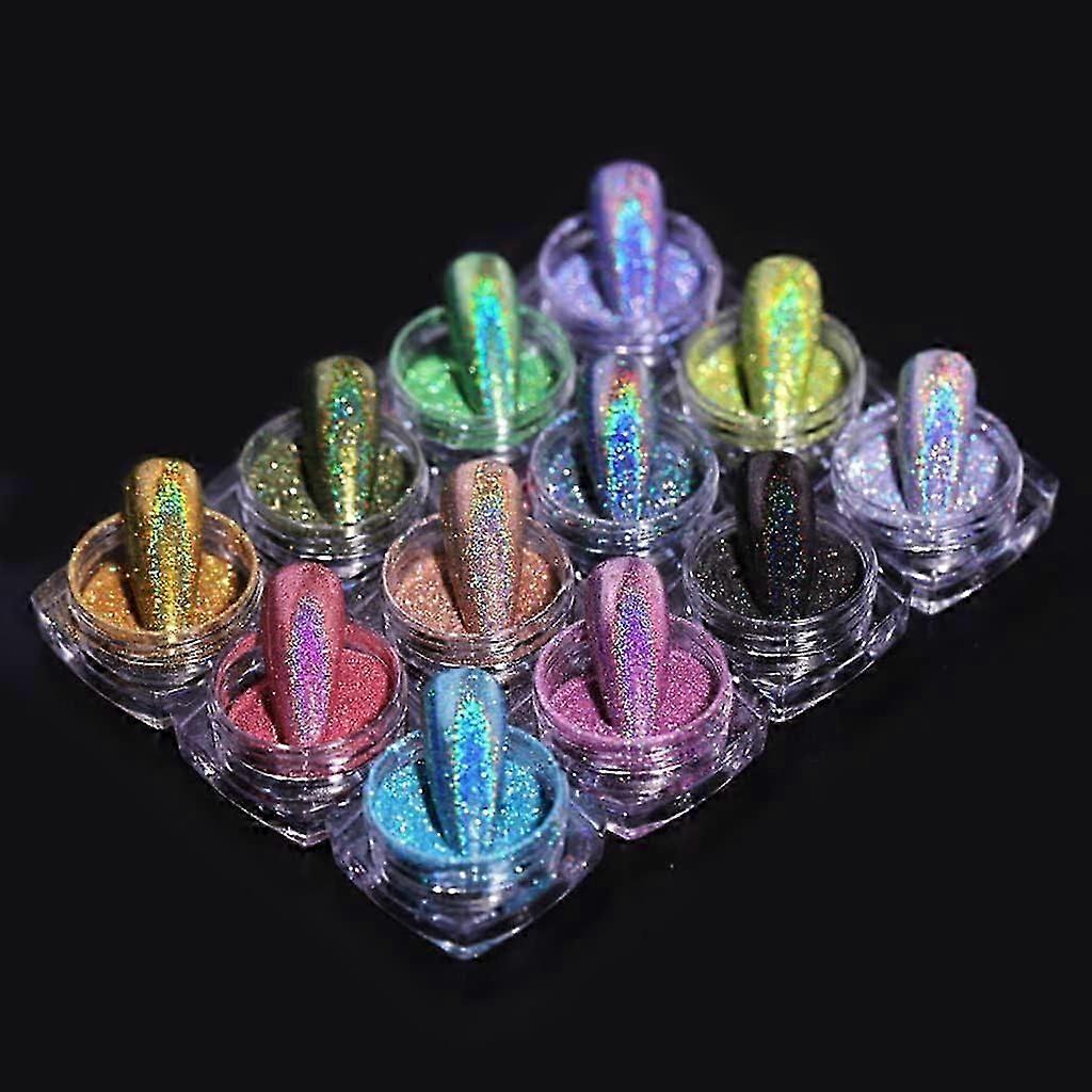 12 Colors Glitter Nail Glitter Super Sparkling Mirror Chrome Effect Nail Pigment Powder Holiday Makeup