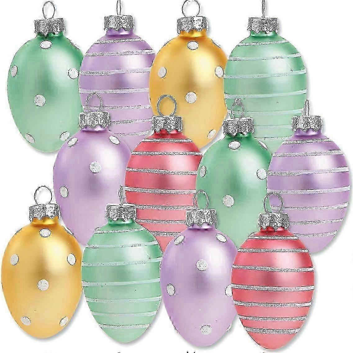 12 Glass Easter Eggs with 6 Designs - Ideal Mini Spring Holiday Decor for Indoor & Outdoor Office Parties and Easter Tree Ornaments