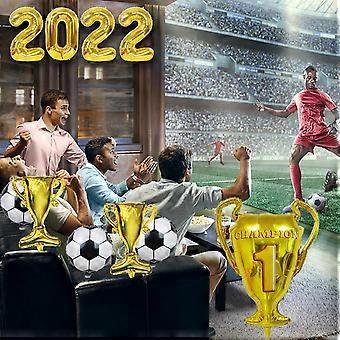 12 Pack Champion Trophy Soccer Party Balloons Set Round Soccer Ball Aluminum Foil Holiday Balloons, Party Funny Consumables