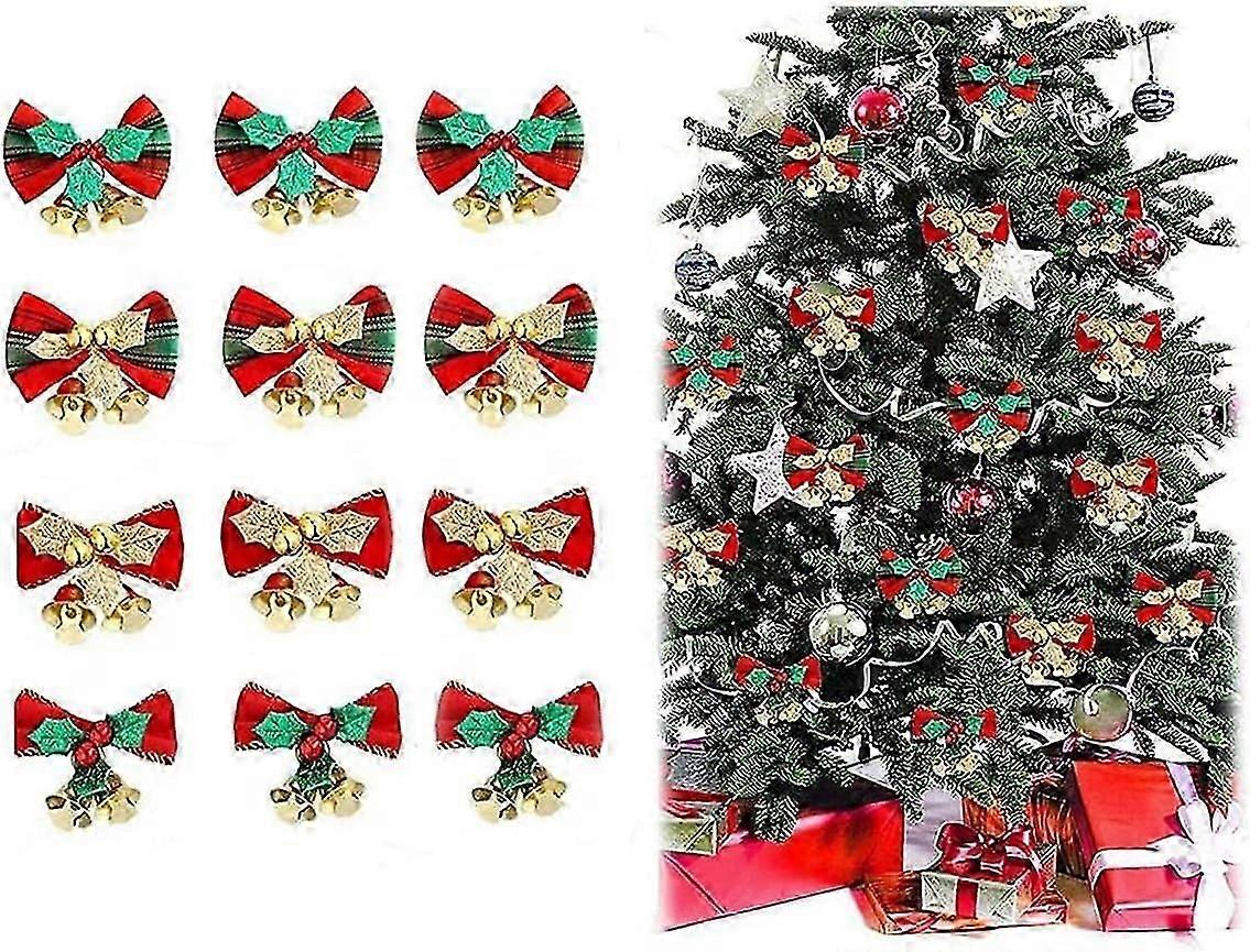 12 Pack Cute Christmas Ribbon Bows with Bells for Christmas Tree, Christmas Wreath, Decoration and Craft Supplies ZeGoods