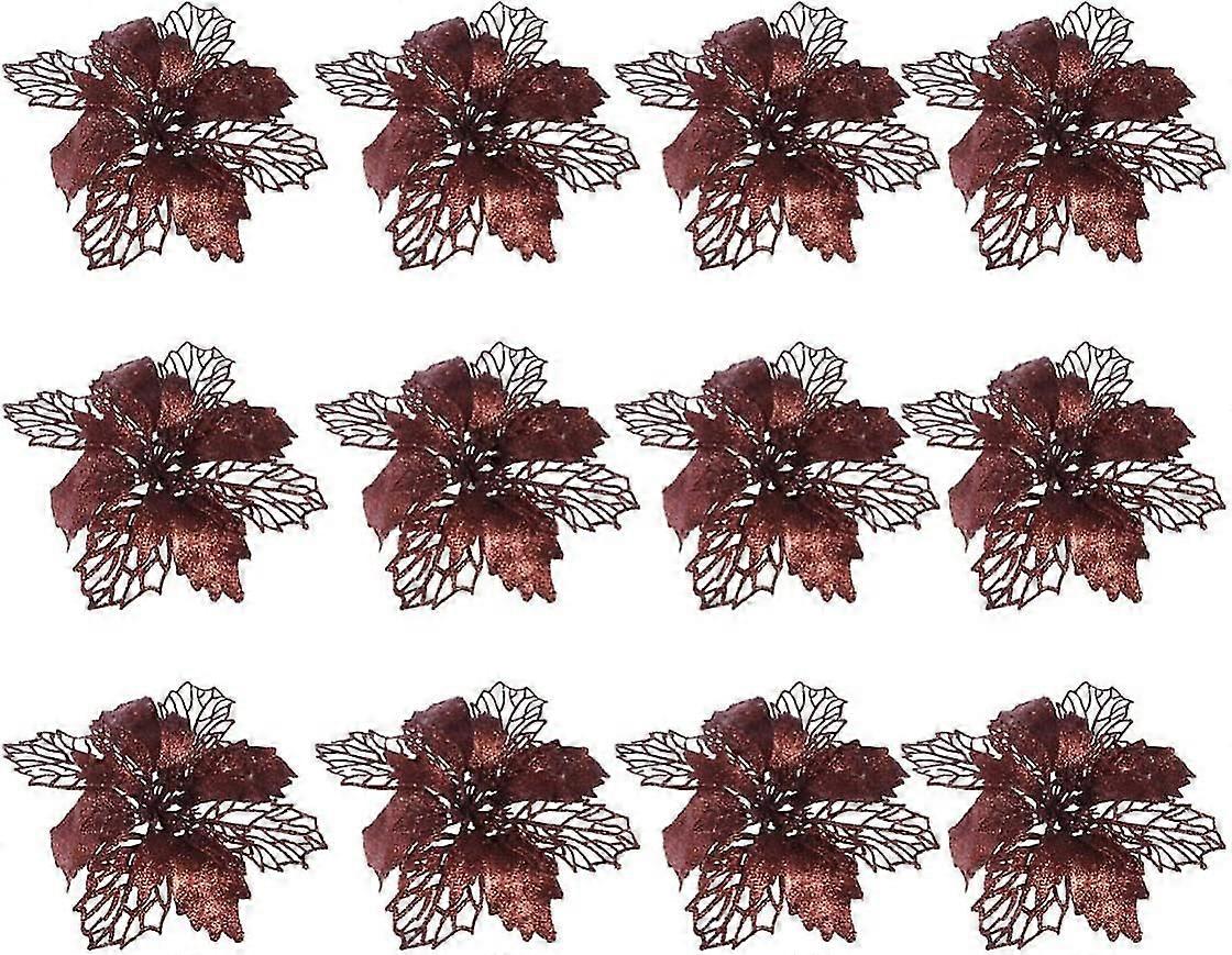 12 Pcs Christmas Flower Poinsettias Glitter Poinsettia Artificial Christmas Poinsettia Christmas Tree Ornaments Christmas Decorations Flower (coffee)