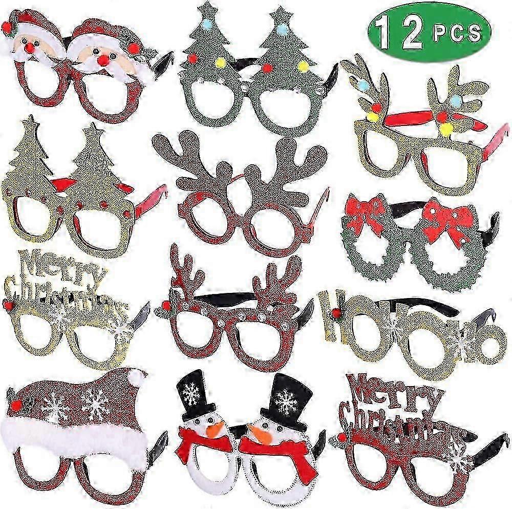 12 Pcs Christmas Glasses Glitter Party Glasses Frames Christmas Decoration Costume Eyeglasses For Christmas Parties Holiday Favors Photo Booth 2025