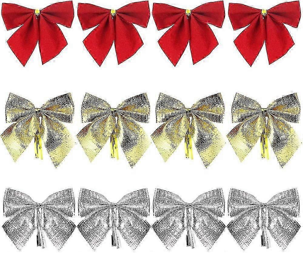 12 PCS Christmas Ribbon Bow, Christmas Ribbon Bows with Gold Sash 3 Colors Bow Ties Christmas Decoration for Christmas Trees, Gift Wrapping, Party Cra