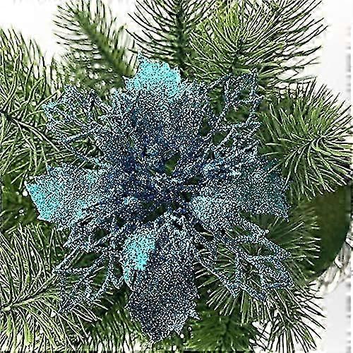12 Pieces Glitter Christmas Tree Decoration, Christmas Tree Decoration Ornament Christmas Flower Decor, Christmas Tree Pendant (Blue, 24 cm)