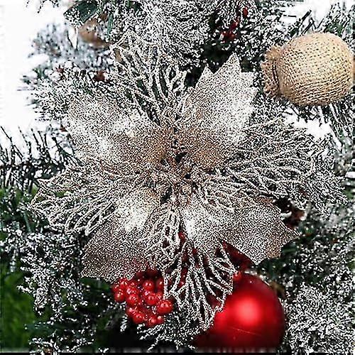 12 Pieces Glitter Christmas Tree Decoration, Christmas Tree Decoration Ornament Christmas Flower Decor, Christmas Tree Pendant (Champagne, 24 cm)