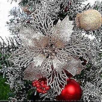 12 Pieces Glitter Christmas Tree Decoration, Christmas Tree Decoration Ornament Christmas Flower Decor, Christmas Tree Pendant (Champagne, 24 cm)