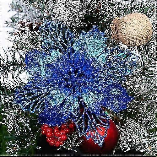 12 Pieces Glitter Christmas Tree Decoration, Christmas Tree Decoration Ornament Christmas Flower Decor, Christmas Tree Pendant (Indigo, 16 cm)
