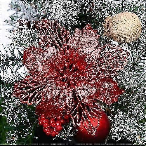 12 Pieces Glitter Christmas Tree Decoration, Christmas Tree Decoration Ornament Christmas Flower Decor, Christmas Tree Pendant (Red, 24 cm)