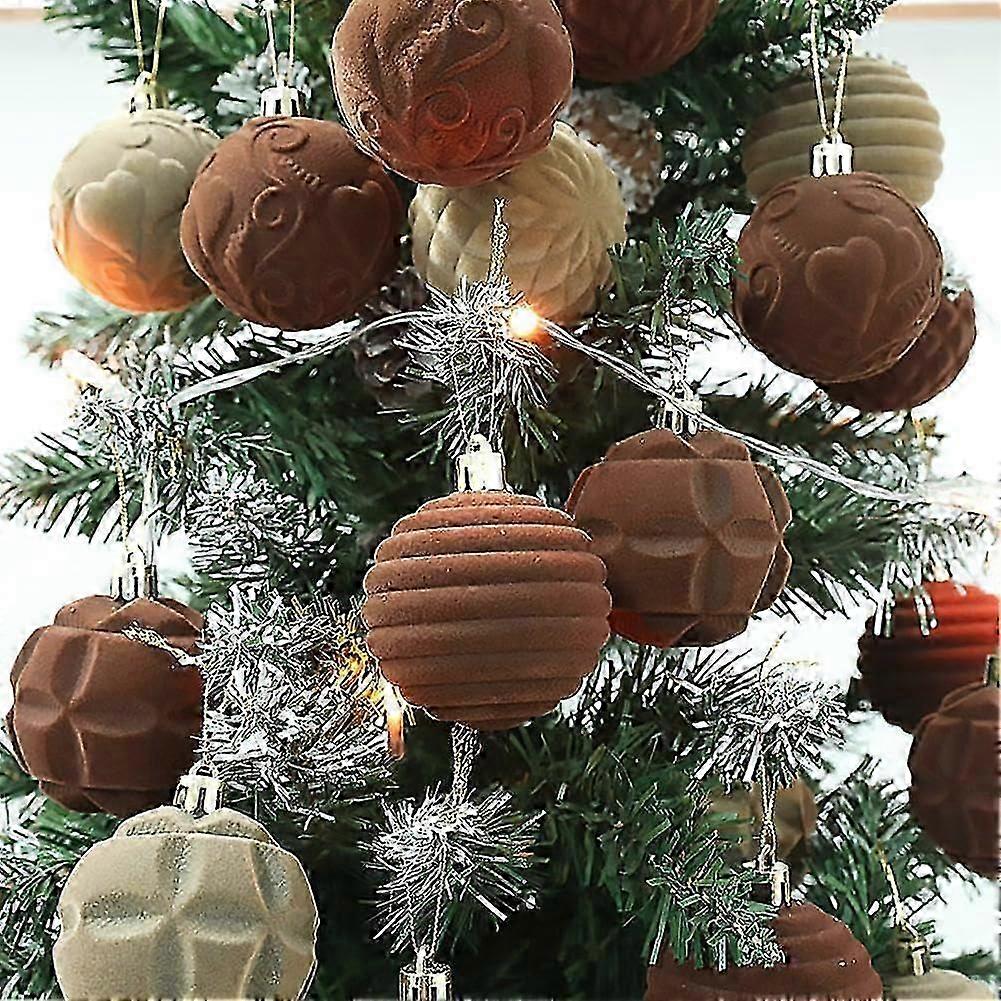 12 Pieces Velvet Christmas Baubles, Shatterproof Farmhouse Tree Ornaments in Coffee Color for Holiday Decorations