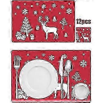 12pcs Christmas Placemat, Christmas Placemat, Red Christmas Placemat, PVC Rectangle Placemat, Christmas Coaster - Red One Fawn
