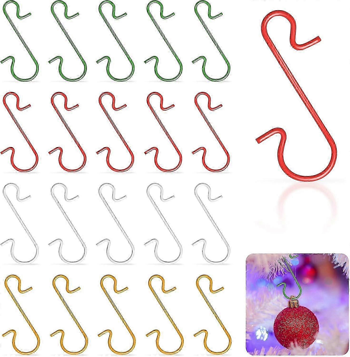 120 Pieces Christmas Bauble Hooks, Christmas Tree Hooks, Christmas Home Decoration Accessories Metal S-Shape Mini Hangers, 4 Colors (Gold/Silver/Red/G