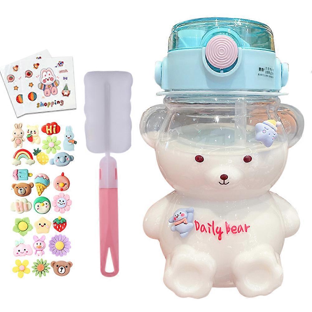 1200ml Kawaii Bear Water Bottle with Straw Portable On Strap Cute Student Stickers Girls Straw Cups Tea Juice Milk Cup With Straw