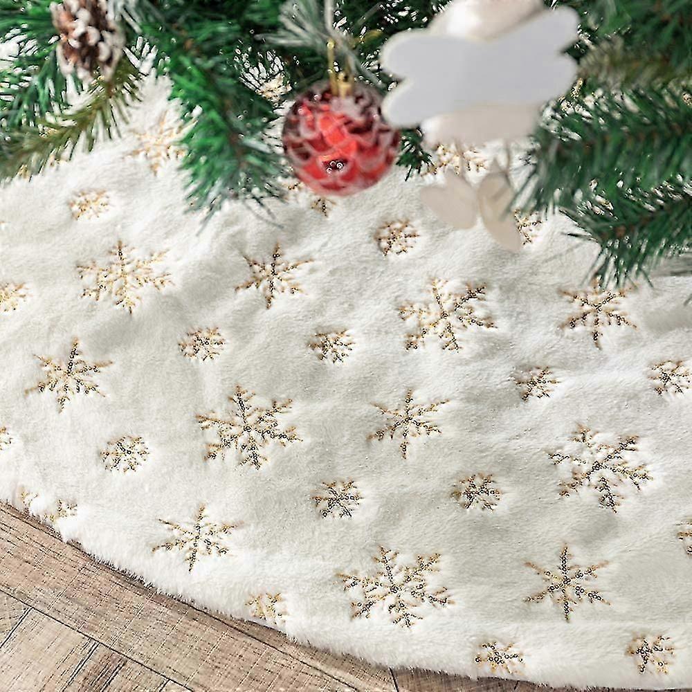122Cm Christmas Tree Skirt Faux Fur Rug With Gold Snowflake Embroidery Christmas Party Christmas Tree Decoration