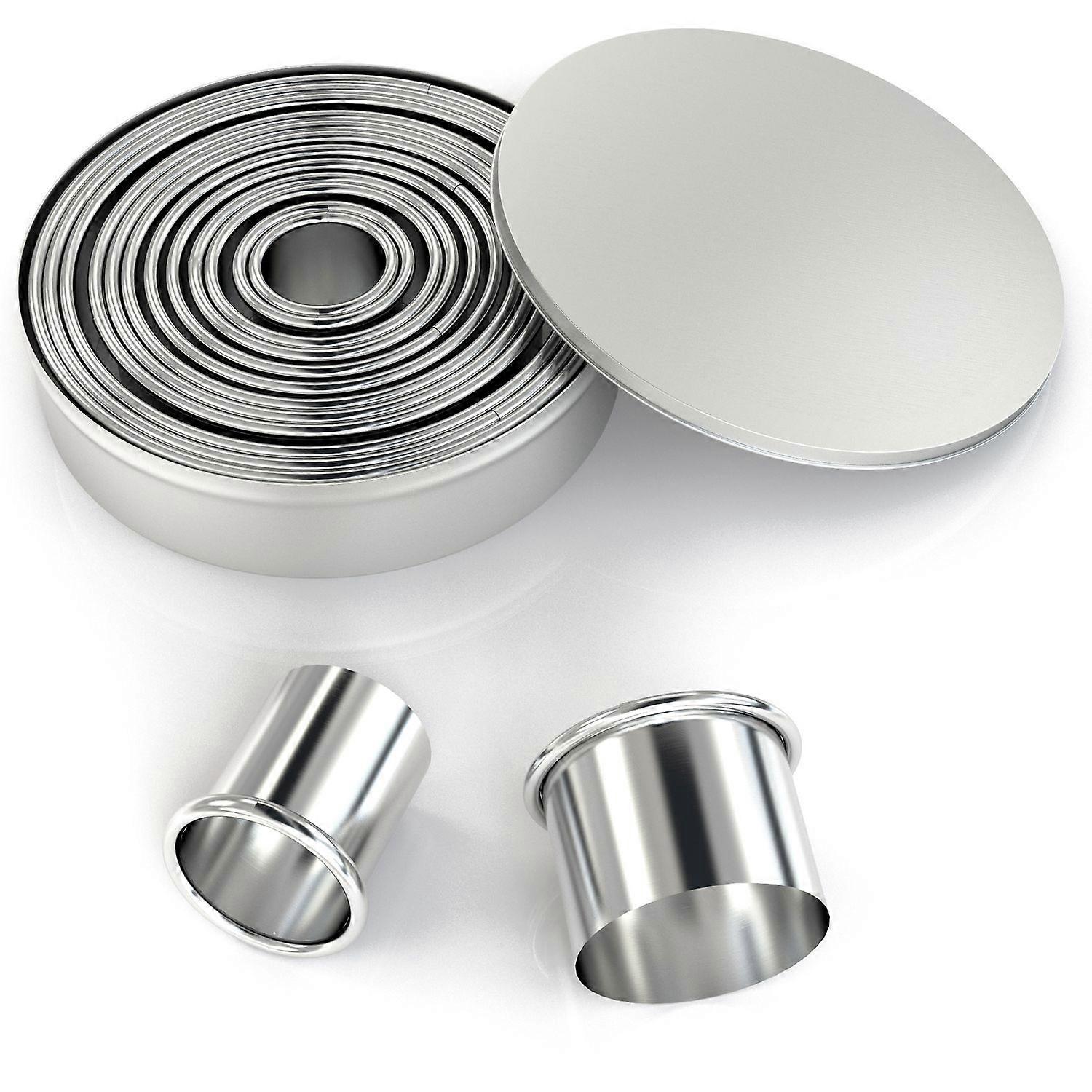 12-teiliges Ausstechformen Set in Silber mit Aufbewahrungsbox - Cutter Ringe Rund aus Edelstahl für Kekse Cookie Plätzchen Gebäck Backform Ausstecher