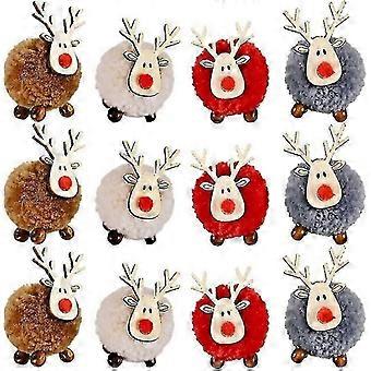 12pack Christmas Cute Wool Felt Wooden Elk Antler Pendants Christmas Tree Decorations, Lovely Deer Craft Ornament way Compatible Xmas Tree Decor, Merr