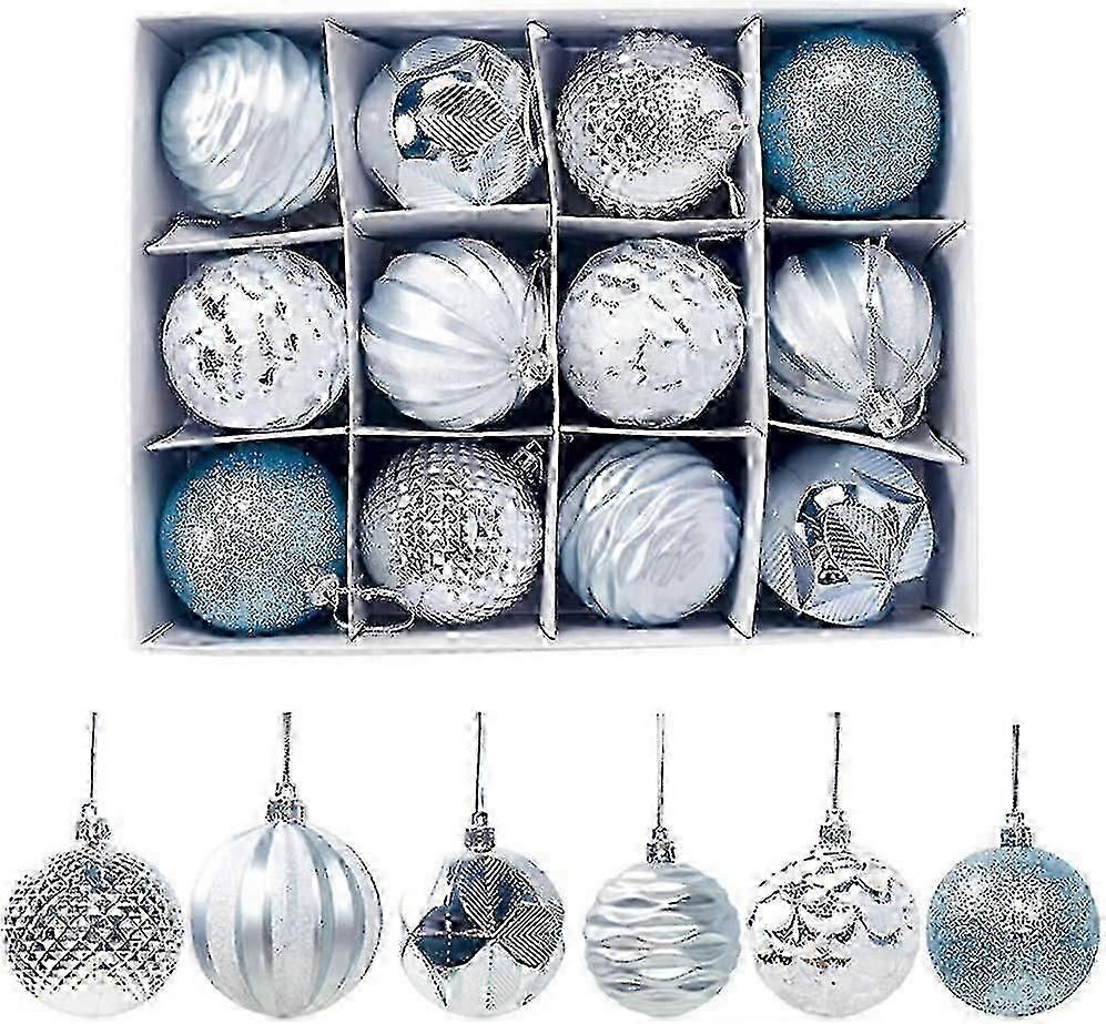 12pcs 5.5cm Christmas Baubles Unbreakable Plastic Xmas Ball Ornaments Decoration For Xmas Tree Decor Party Decor Pendants (silver) hy