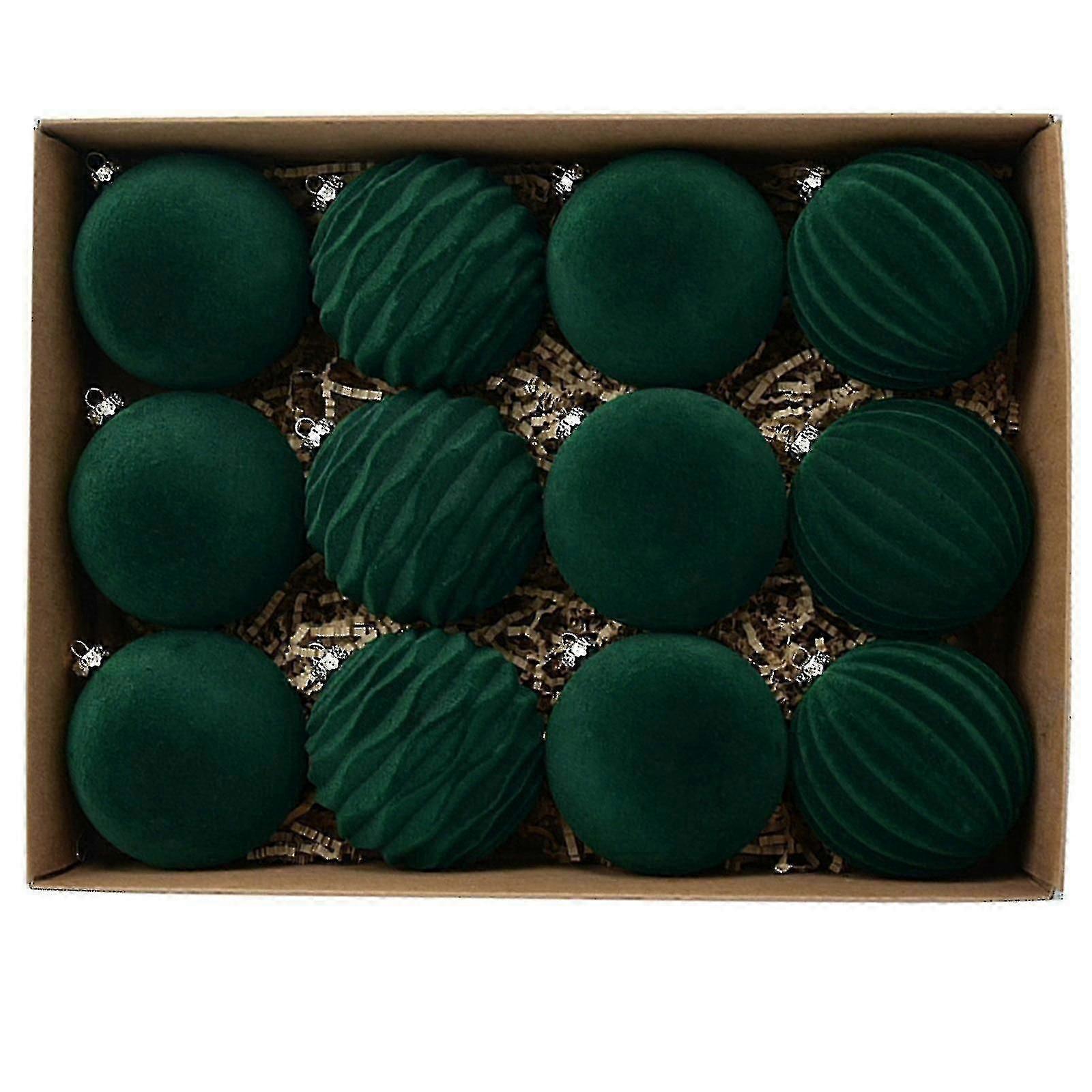 12pcs 8cm Dark Velvet Red Flocking Christmas Baubles for Tree Deco Ornaments
