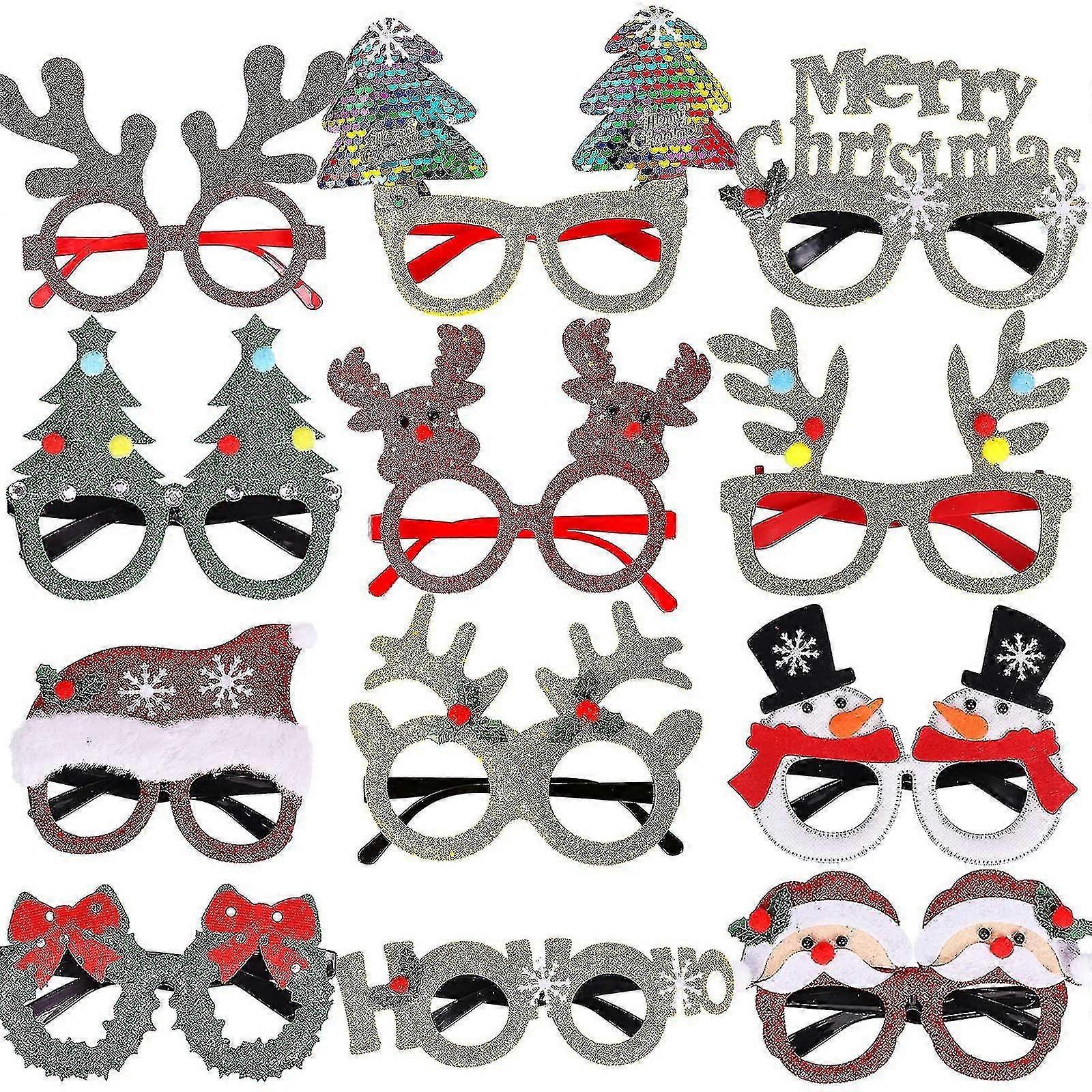 12pcs Christmas Glasses Glitter Party Glasses Frames Christmas Decoration Costume Eyeglasses For Christmas Parties Holiday Favors Photo Booth Hao