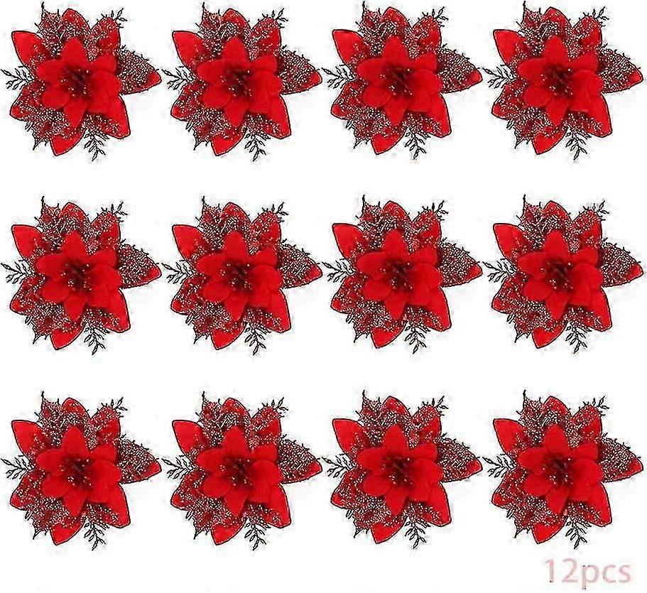 12pcs Christmas Simulation Flower, Poinsettia Christmas Flower, Christmas Flower, Christmas Tree Decoration, Artificial Christmas