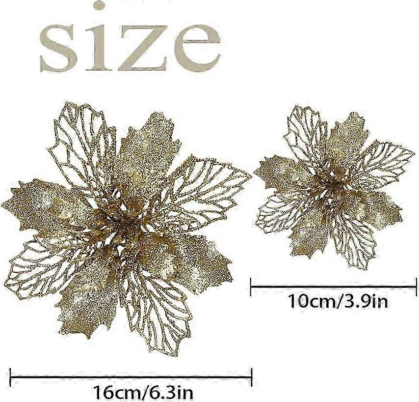 12Pcs Christmas Simulation Flower, Poinsettia Christmas Flower, Christmas Flower, Christmas Tree Flower, Christmas Tree Decoration(Gold)