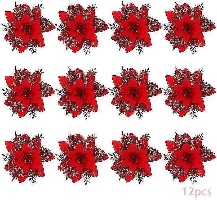 12pcs Christmas Simulation Flower, Poinsettia Christmas Flower, Christmas Flower, Christmas Tree