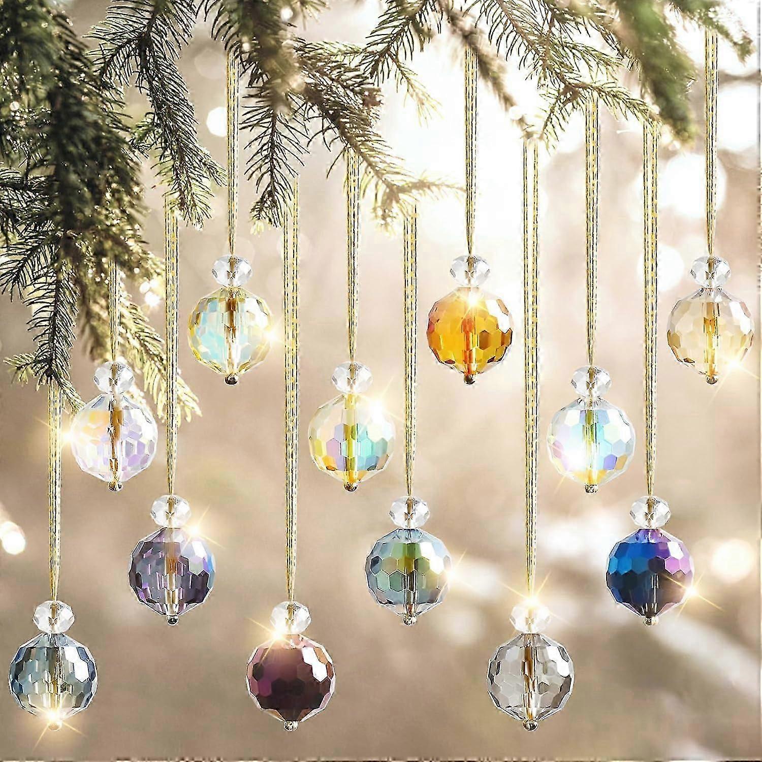 12PCS Christmas Tree Crystal Ball Ornaments 22mm Glass Christmas Baubles Rainbow Prism Balls Suncatcher Christmas Tree Decorations Multicolor Hanging