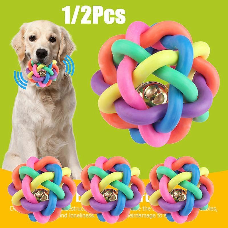 1/2Pcs Dog Toy Puppy Cat Colorful Rubber Training Chewing Ball Bell Squeaky Sound-Making Toy Dog Bite Resistant Ball Dog Supplies