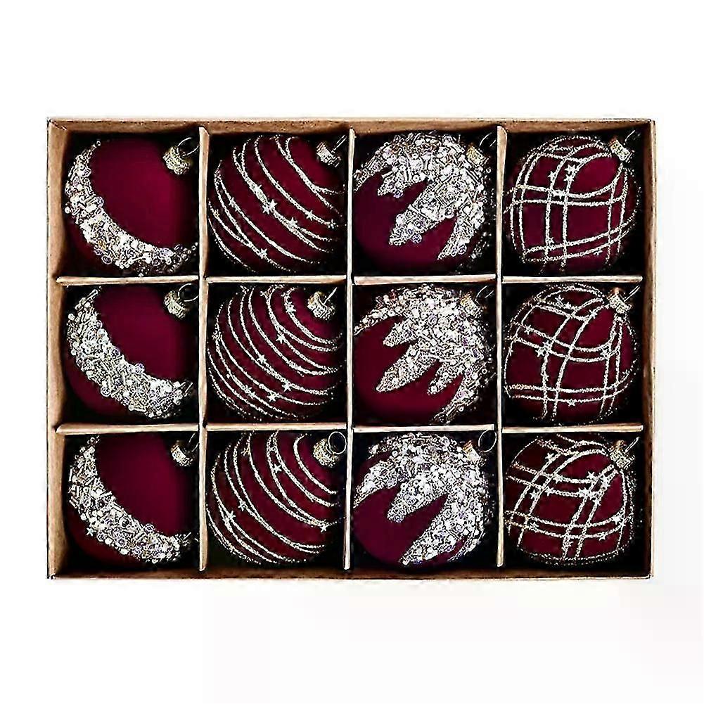 12pcs Flocked Christmas Balls Set Velvet Christmas Balls Christmas Tree Ornaments Xmas Tree Hanging Decorations Home Decor