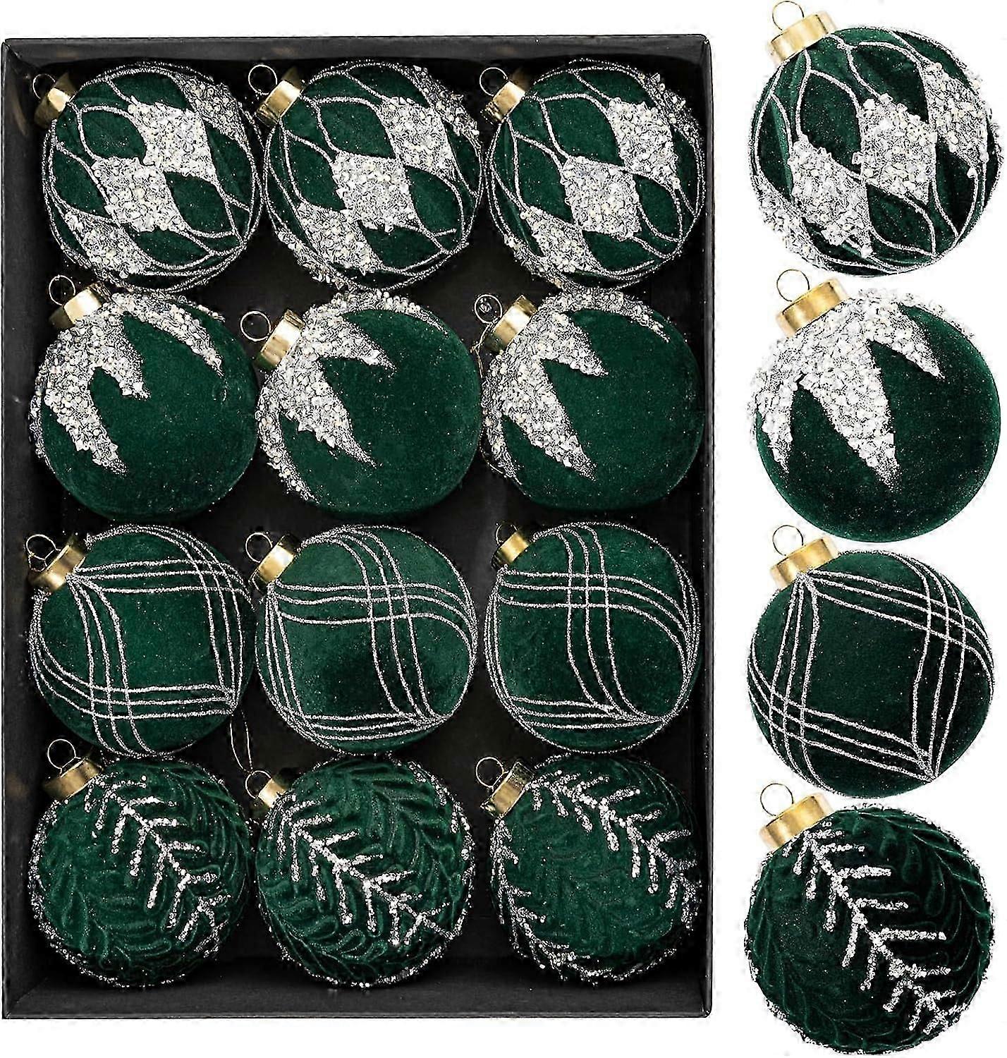 12PCS Green Christmas Balls Ornaments - Christmas Tree Decoration 80mm Colorful Patterned Christmas Ball Ornament - Suitable for Christmas, Parties