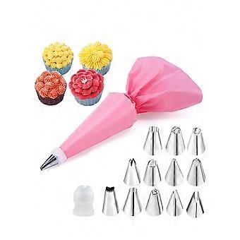 12pcs Pink Flower Shaped Icing Piping Bags Set With Stainless Steel Nozzles, For Diy Baking And Cake Decorating