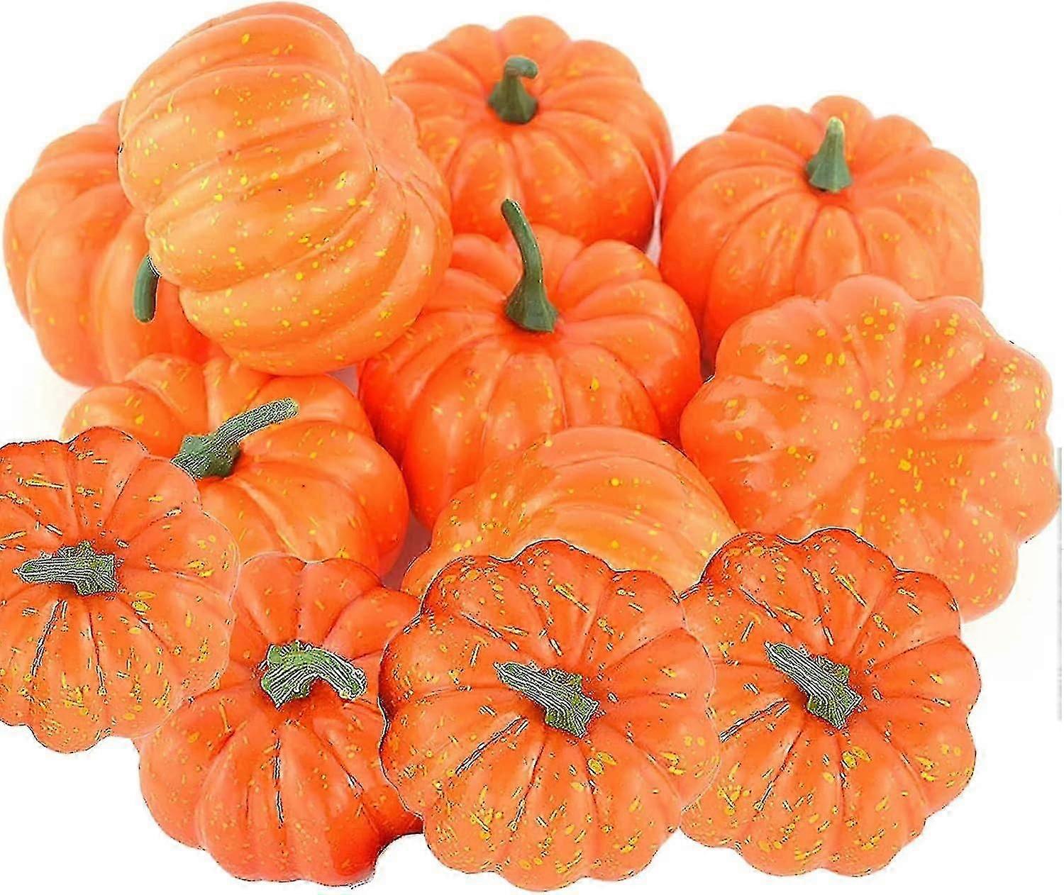 12pcs Small Artificial Lifelike Pumpkin Fall Harvest Mini Pumpkins For Home Garden,thanksgiving Or Halloween Decoration (orange)