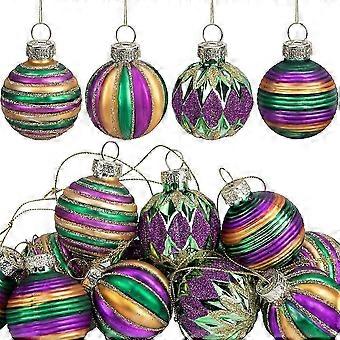 12pcs/box 4cm Purple Green Gold Painting Mardi Gras Ball New Year Xmas Tree Ornaments Decoration For Home Masquerade Party