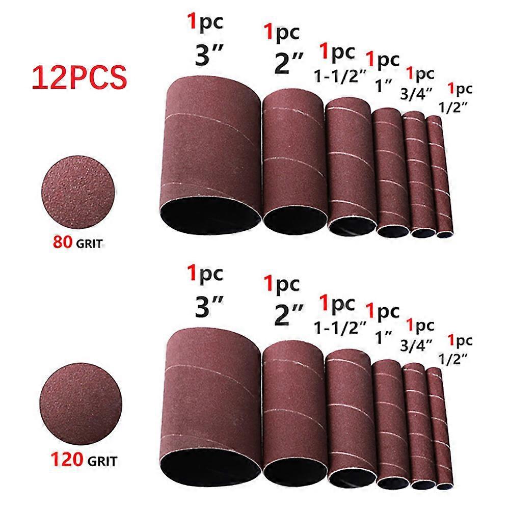 Features:* 80/120 Grit Mixed Vibrating Spindle Grinding Sleeves, 6 pieces each, 12 pieces in total.* 1/2", 3/4", 1", 1-1/2", 2" and 3" grit grinding sleeves, 4.5" (115mm) long.* Different diameters and grits are perfect for your job and machine.* Alumina abrasive for high performance and durability.* Fits most oscillating sand mills on the market * Mainly used for a variety of metals, plastics, wood, jade for polishing. Specifications:* Material: Alumina * Length: 4-1/2 Inch * Grit: 80#, 120# * Quantity: 12pcsPackage Included:12 * Long Sleeve SandpaperNote:1. The actual colors of the item may be slightly different from the pictures shown on website caused by many factors such as brightness of your monitor and light brightness.2. Please allow slight manual measurement deviation for the data.