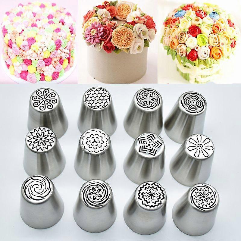 12Pcs/Set Russian Large Icing Decorating Tips Set Baking Utensils Tulip Flower Icing Nozzles Sugar Mass Cakes Cupcakes Cakes Decorating
