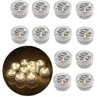 12x Underwater LED Flameless Tea Lights, Battery Operated Submersible Waterproof Decorative Candle Lights (Warm White)