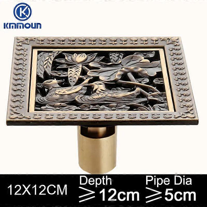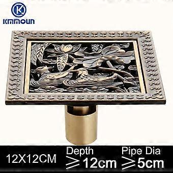 12x12cm Antique Brass Brushed Floor Drain Grate For Bathroom, Kitchen, Shower