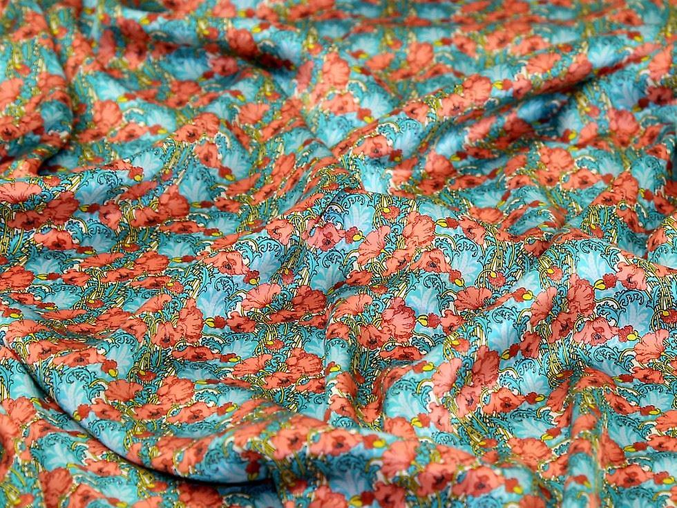 1.36m Liberty London Clementina Belgravia Silk Satin Fabric Coral & Aqua - per metre