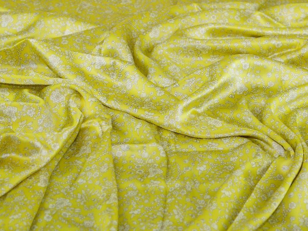 1.36m Liberty London Summer Blooms Belgravia Silk Satin Fabric Citrus - per metre