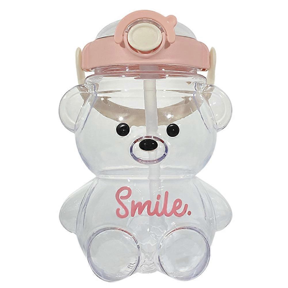 1400ml Cute Bear Water Bottle Leakproof Cup with Straw Outdoor Sports Water Kettle with Handle Big Belly Jug Kettle