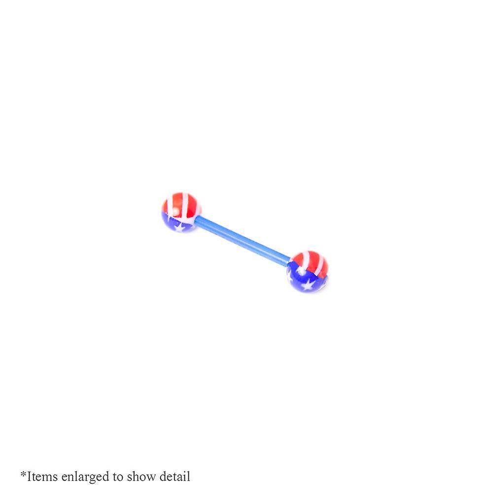 BODY JEWELRY ONLINE14ga-3/4" Flexible Shaft American Flag Nipple Tongue Straight Barbell DESCRIPTION Great for Nipple and Tongue Piercings Features Acrylic Beads with American Flag Design Flexible Shaft Means All Day Comfort Shaft Measures 14ga with an Overall Length of 5/8"(16mm)All items are Nickel Free, Autoclave Safe, and Hypoallergenic.