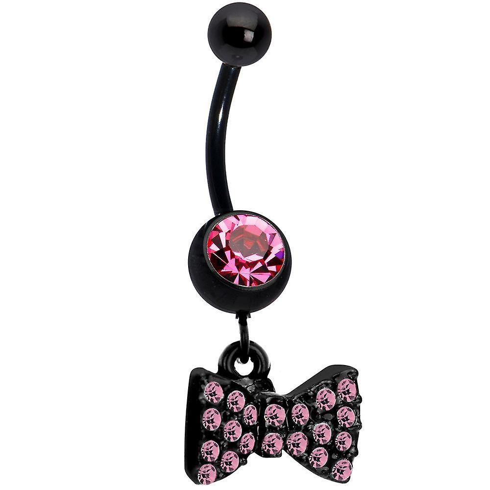 14Ga black anodized dangle bow tie belly navel piercing ring