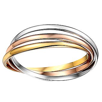 14k Tricolor Gold Interlocking Women's Bangle Bracelet, 7.5"