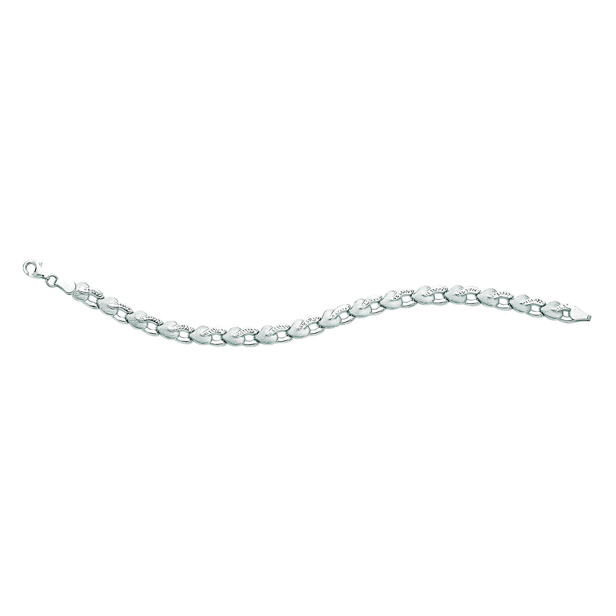 14k White Diamond Cut Heart Shapes Links Bracelet, 7.25"
