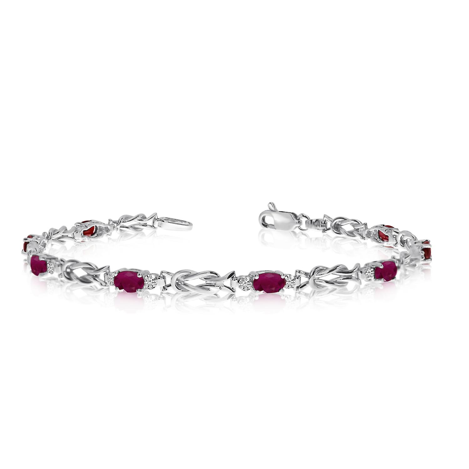 14K White Gold Oval Ruby Stones And Diamonds Tennis Bracelet, 7"